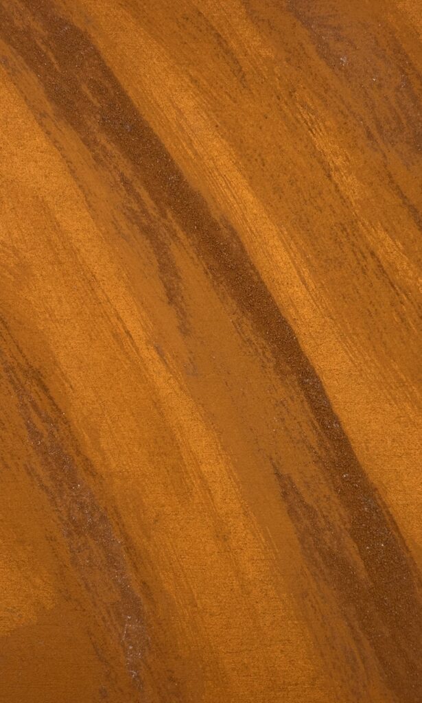 This surface shows the abstracted structure of a wood print in a deep brown tone – grain, annual rings and knotholes are clearly visible and appear like frozen traces of a natural growth process. The tactile depth and organic lines give the material an archaic, almost narrative quality. Ideal for architectural applications that focus on authenticity, craftsmanship and the transformation of natural models into durable materials.